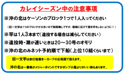 ※船での場所移動される際は出船時間の前に必ず連絡ください。例→沖の北から旧赤灯など
