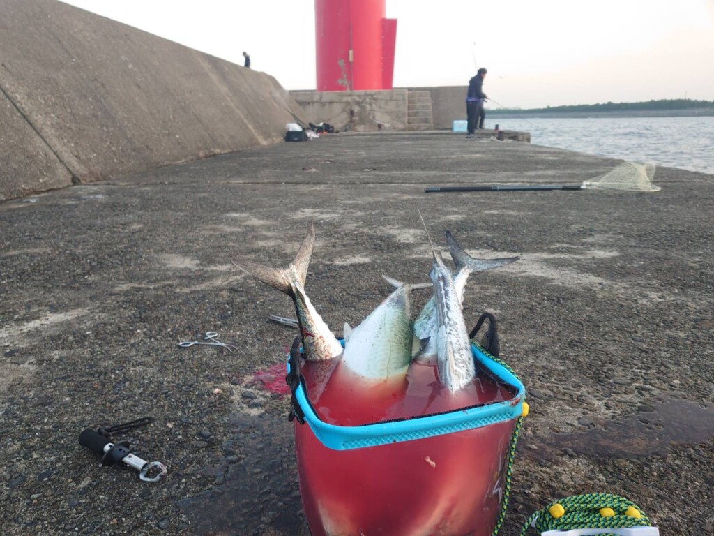 藤岡様 旧一文字赤灯 ショアジギでサゴシ!内向きでの釣果です。