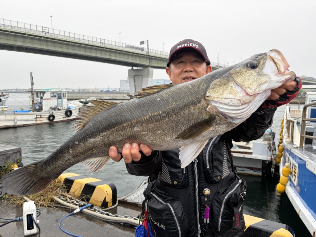 川原様 旧一文字赤灯 エビ撒き スズキ69.5cm🎣