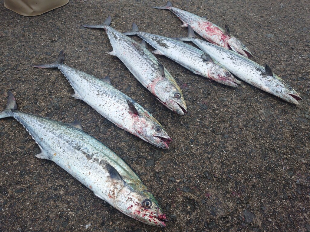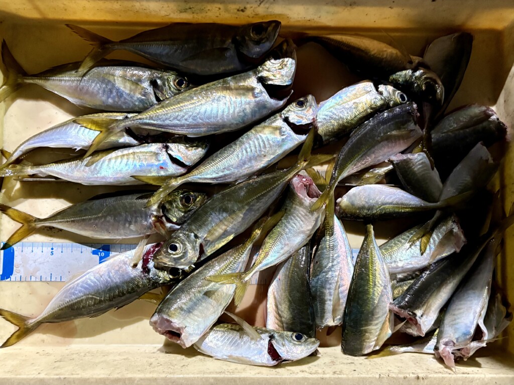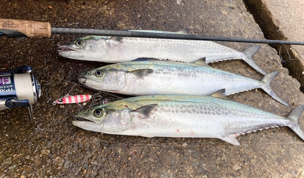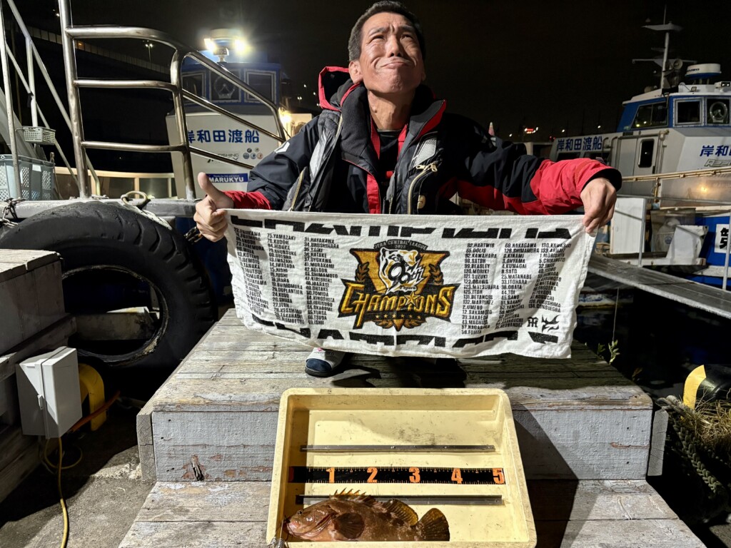 有言実行㊗️リベンジ成功🐯島ちゃん 旧一文字赤灯 エビ撒き釣り 昨日バラシたと思われるアコウ37.5cm🐟18時頃に見事❗️釣り上げ成功🎣 白田名人のアジ&上垣内様のサゴシも頂き🔝超御機嫌🔝