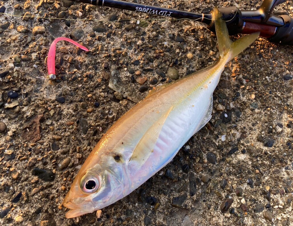 マックススタッフ池田さん 旧一文字赤灯 アジングで25cmのアジ!サビキでも釣れてたんですが昨日より少なめでした。