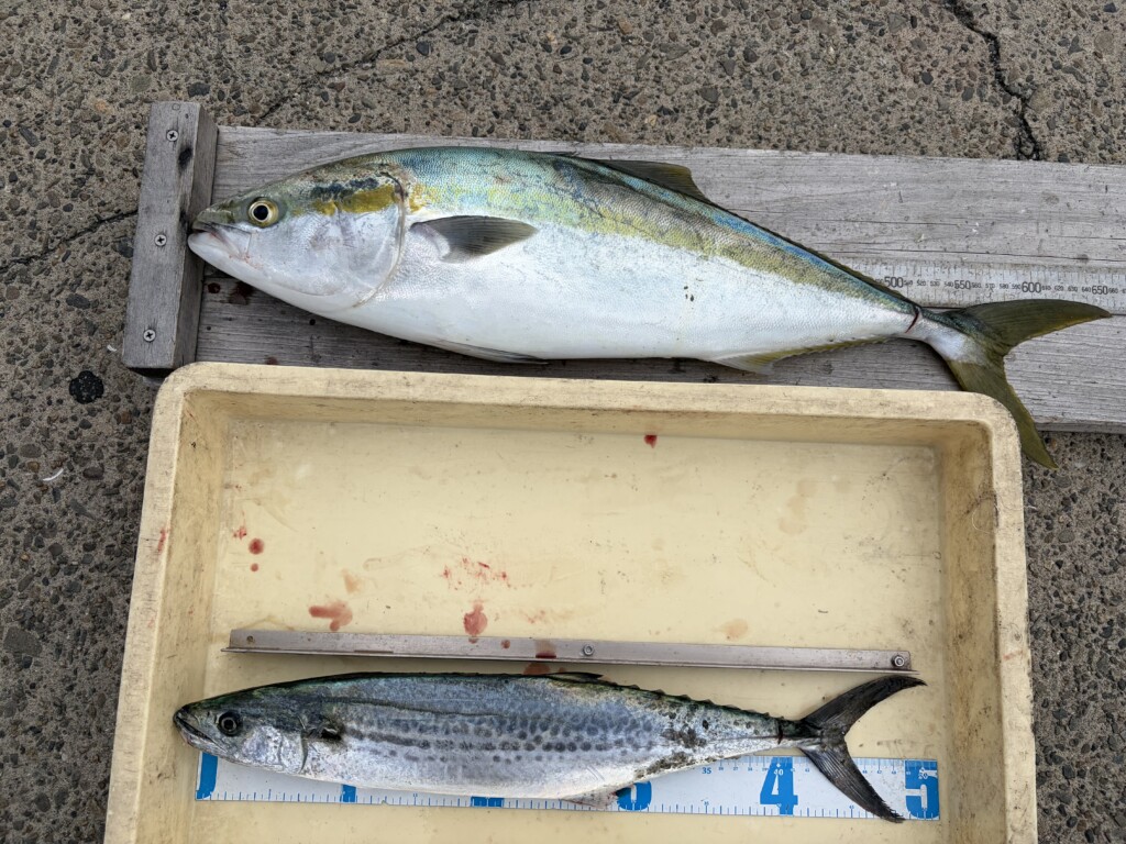 チャイニーズキッチン・ダイチャン様 沖の北 メジロ2本!1つは飲ませ釣りで、もう1つは堤防で拾ったルアーをサビキ竿で投げて釣ったそうです♪