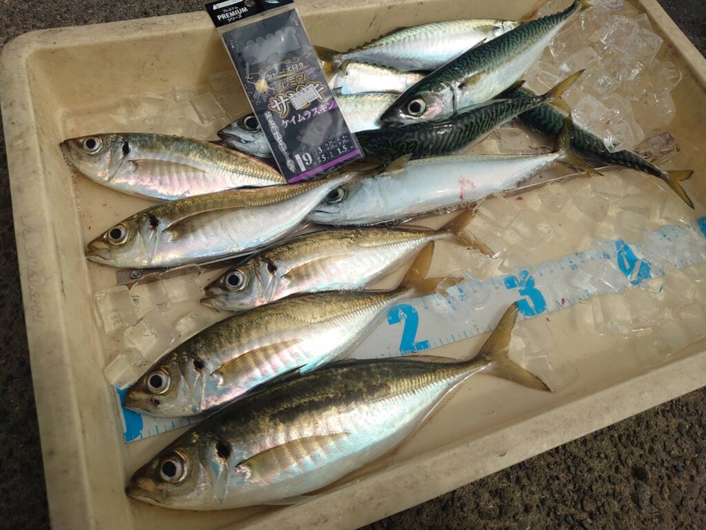 レジェンド山本 沖の北 先端内向き 飛ばしサビキで中アジ・中サバ!アジは最大29cm!小アジは早朝の1匹のみ
