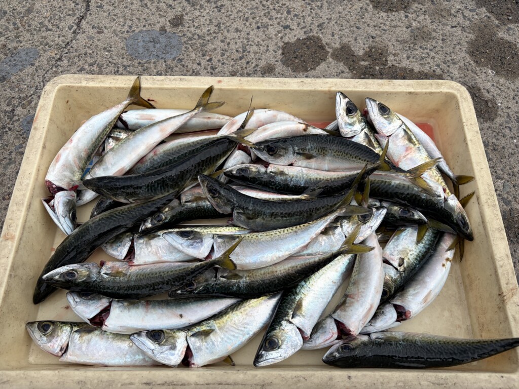 小谷様 沖の北内向き 飛ばしサビキ サバ27cmまで多数🎣タナは2〜3ヒロ
