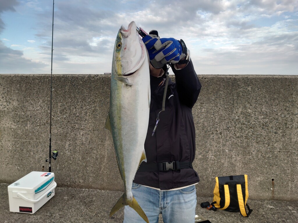 沖の北と赤灯の灯台まわりはかなり深い(タナ6〜7ヒロ)ので、壁際の中層周辺を狙うようにしてください。今日も皆さん壁際で2〜3ヒロがパターンのようでした。朝一は根魚で底狙い、日が昇ってからは浅タナでハネ狙いって感じです。