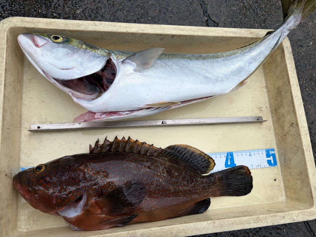 まなきち様 沖の北 ショアジギでメジロ🎣アジ飲ませではアコウ GET✨