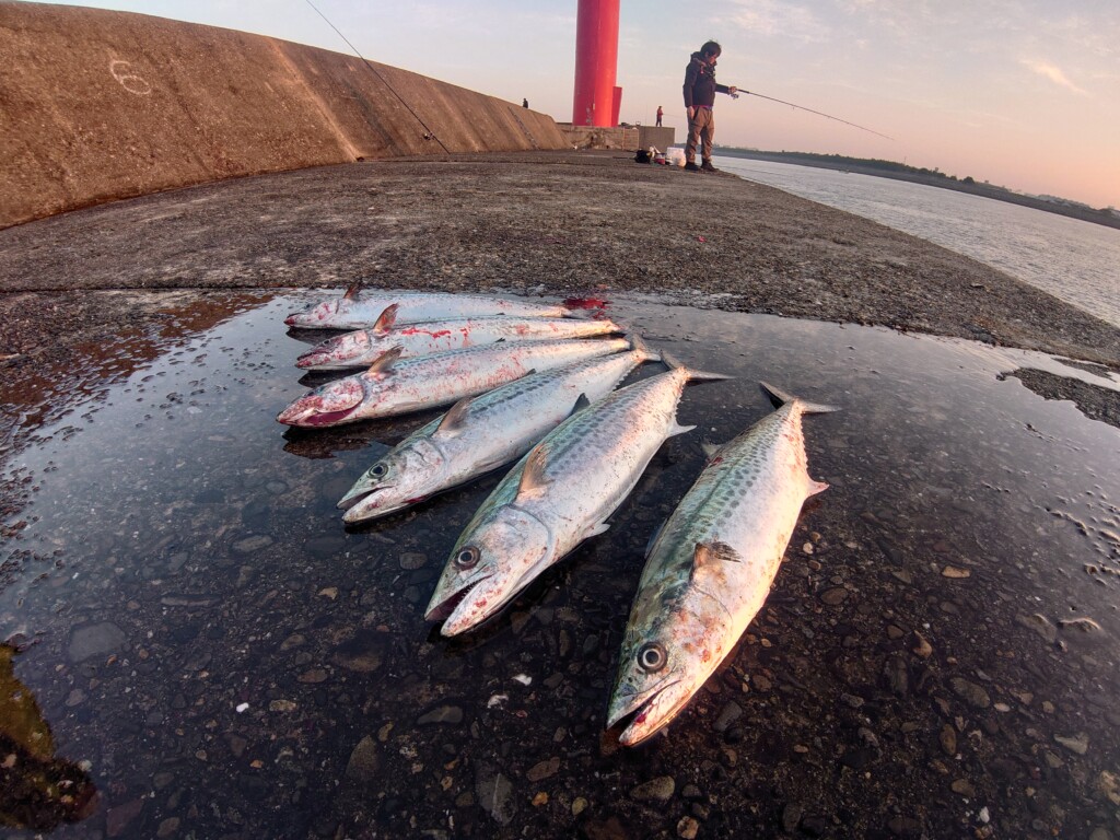 AIR児玉 旧一文字赤灯 ジャックアイ・マキマキ岸一ピンクでサゴシ!6時すぎから釣れ始めて内外両方で♪
