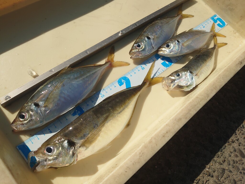 北野様 沖の北 内向き 飛ばしサビキで中アジ!豆〜小アジが多いです。