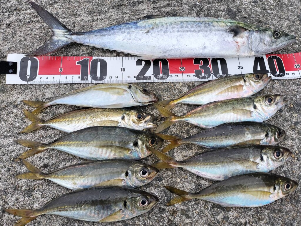 まぁ様 沖の北 ショアジギでサゴシ!中アジは外向きの足元サビキで釣れたそうです。
