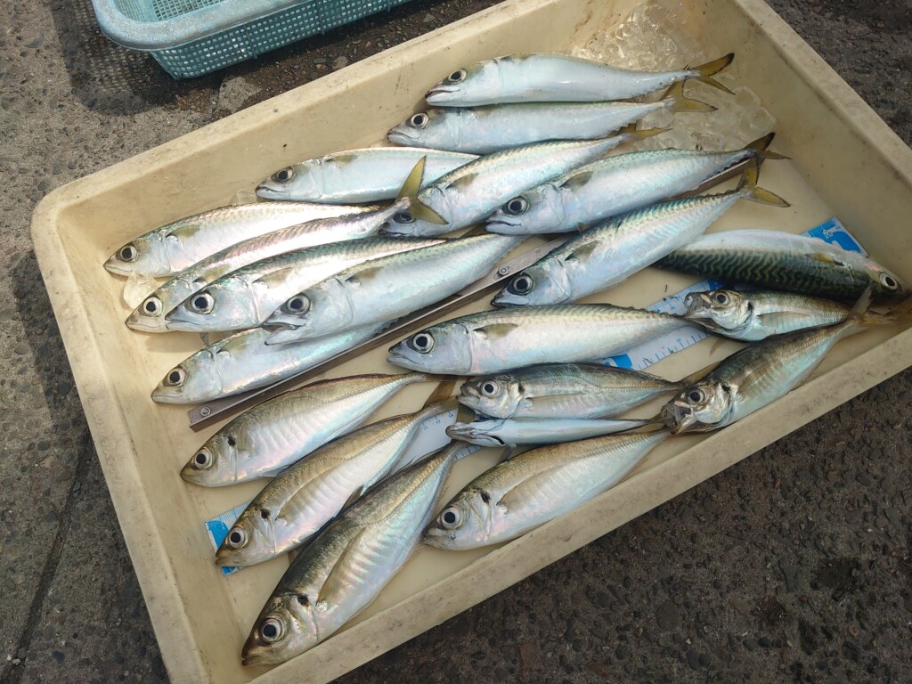 レジェンド山本 沖の北 先端内向き 飛ばしサビキで中アジ・中サバ!アジは最大29cm!小アジは早朝の1匹のみ